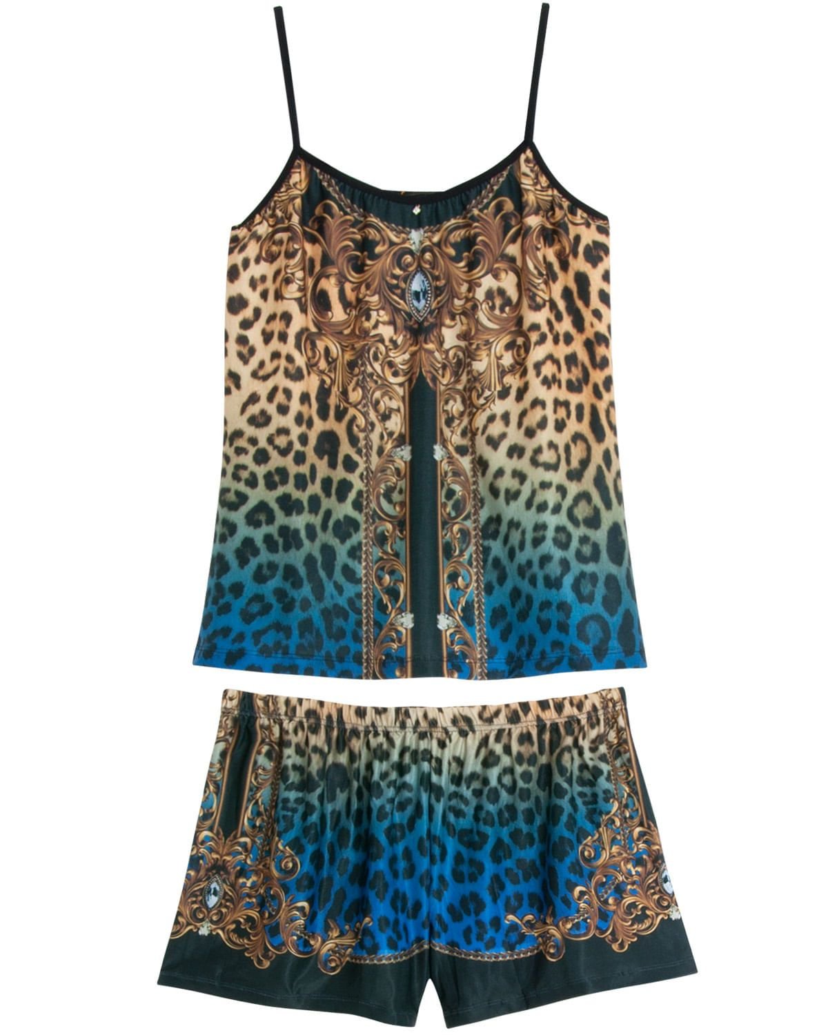 O short doll é a peça favorita para garantir noites confortáveis de verão. Este modelo de alça e short curto, ganha ainda mais graciosidade com o mix de estampas lenço e oncinha. Todo em microfibra de alta qualidade, torna-se ideal para noites quentes. Proporcioando momentos de muita beleza e conforto.