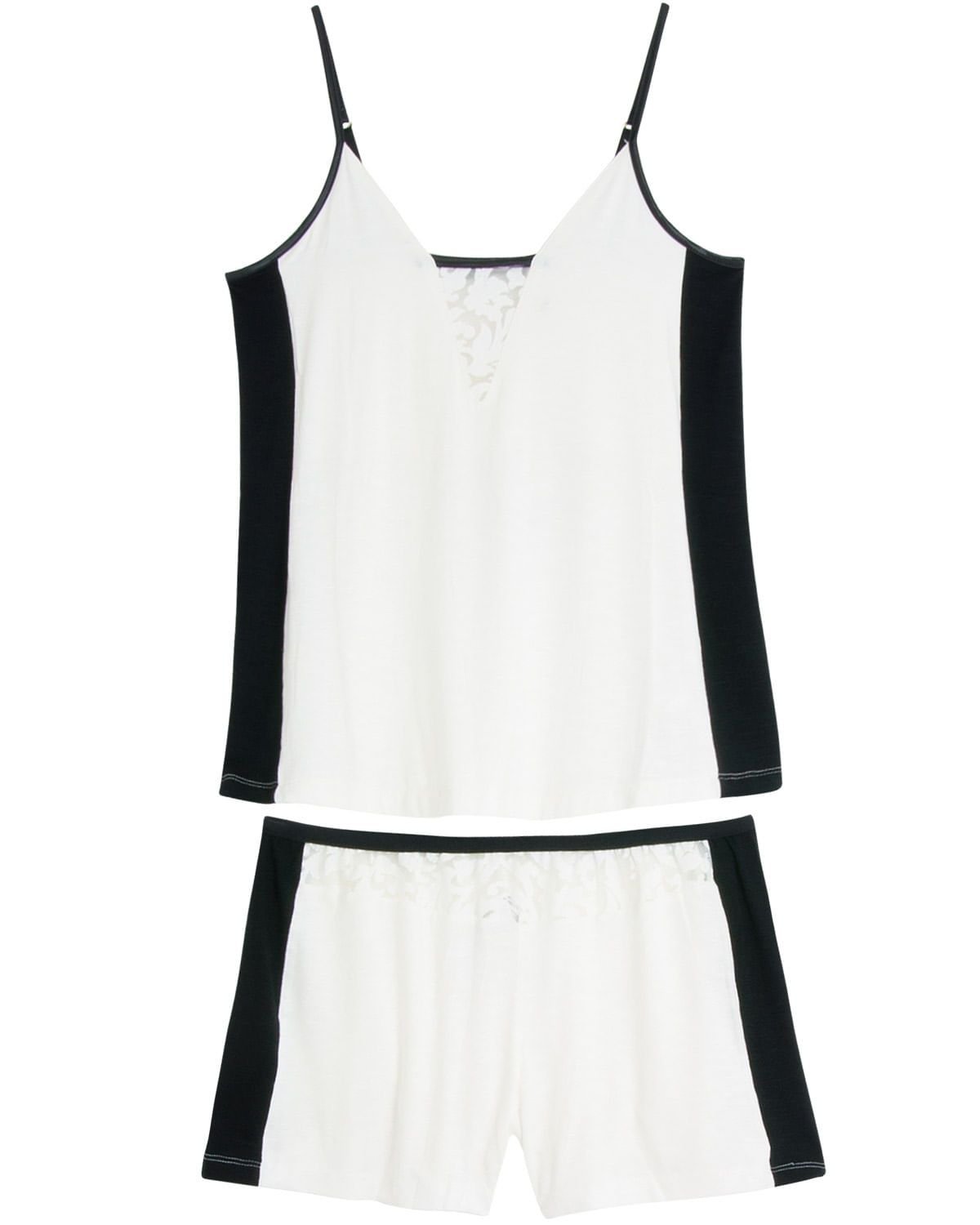 O short doll é a peça favorita para garantir noites confortáveis de verão. Este modelo de alça e short curto, ganha ainda mais graciosidade com as laterais pretas e com a transparencia pontual, dando todo o toque feminino e sensual na medida. Ideal para noites quentes e cheias de conforto e beleza.