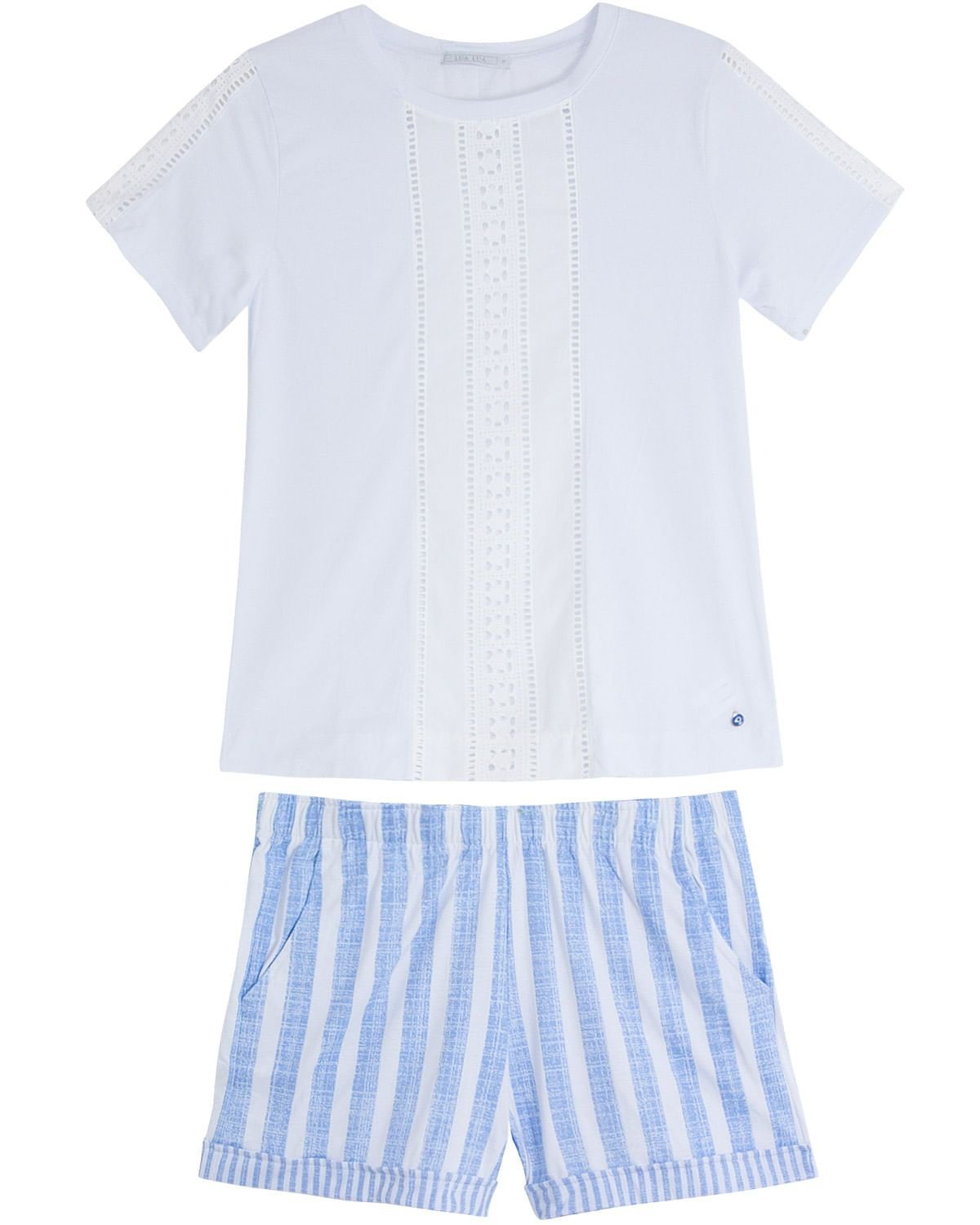 Sofisticado e moderno, este short doll todo feito em algodão de excelente qualidade, proporciona um visual feminino para seus momentos mais intimos. Com short listrado e blusa manga curta com detalhes em renda. Perfeito para mulheres que gostam de estar bem vestida até dentro de casa.