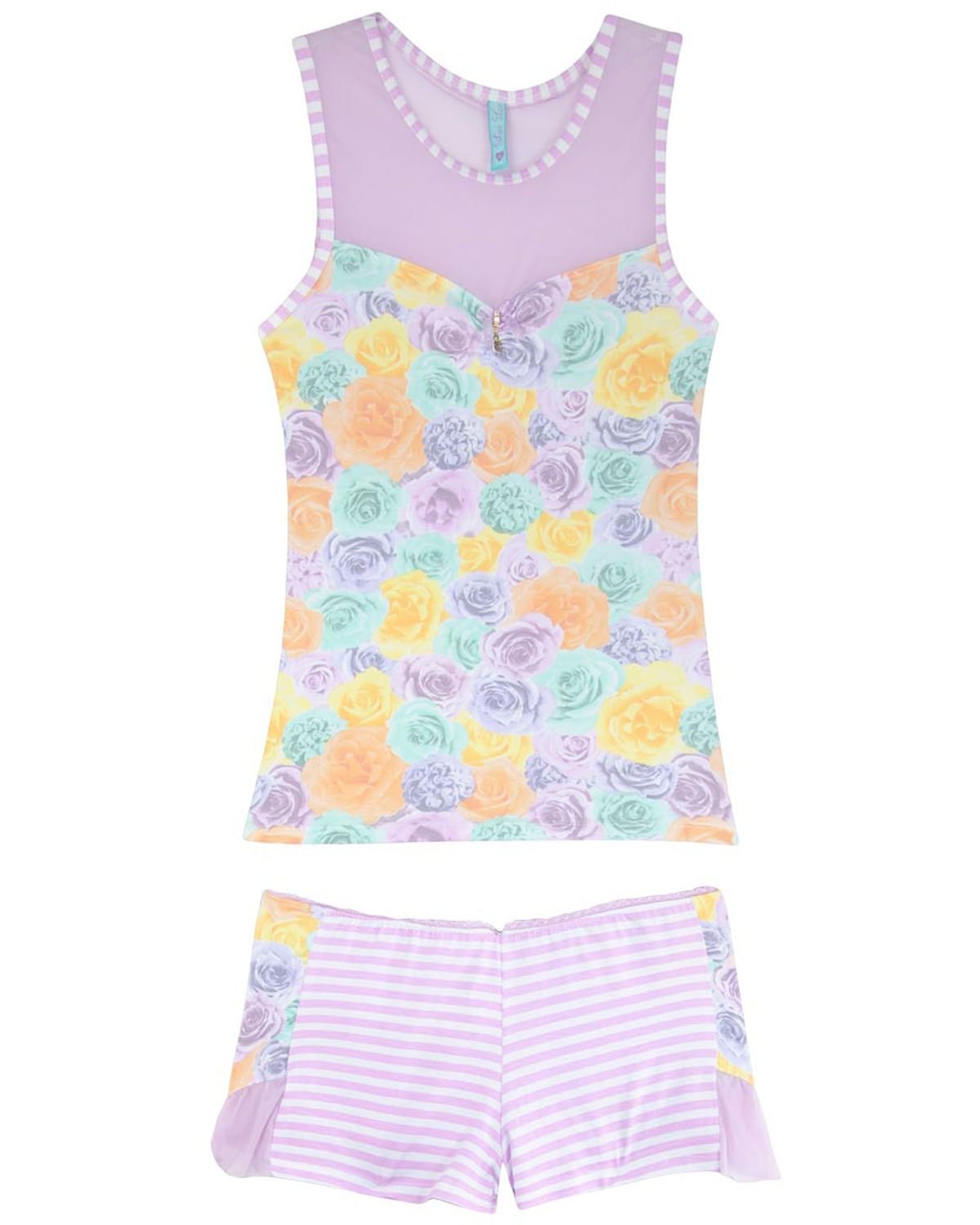 O short doll é feminino e delicado desde a composição de cores. Confeccionado em cotton com graciosa estampa floral e tule no busto, costas e no short, essa peça trará muita beleza e charme, além do conforto para suas noites de sono. Destaque para pingente com strass aplicado no busto.
