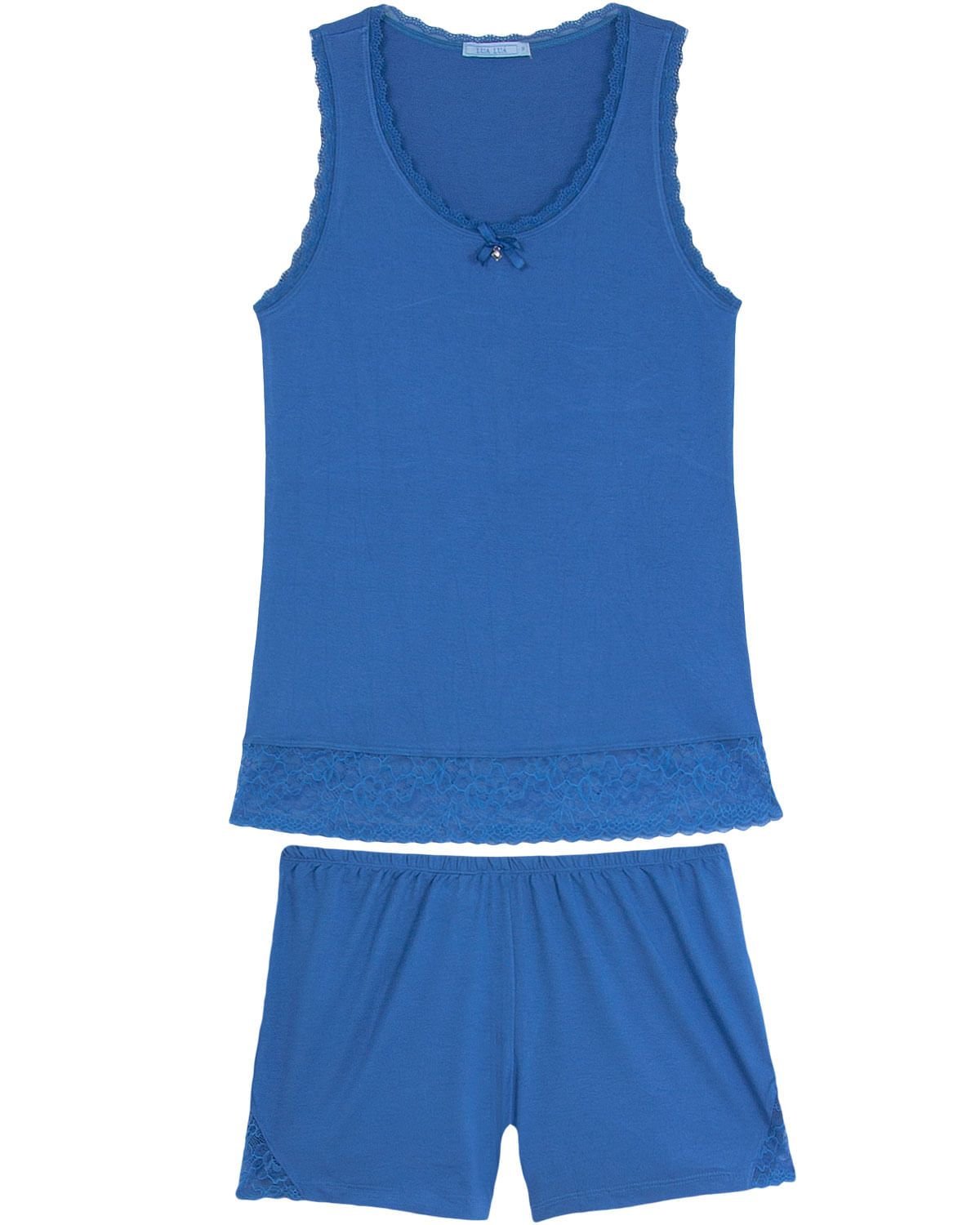 A composição dos tecidos é fator essencial para ter um produto confortável e de bom caimento. Um tecido queridinho e que vem ganhando seu espaço no guarda roupa feminino é a Viscolycra, uma malha leve, macia e de boa elasticidade. Este modelo todo em viscolycra é a peça 'tem que ter' da estação, com acabamento em renda no short e blusa regata, é a peça que vai completar seu momento mais relax do dia.