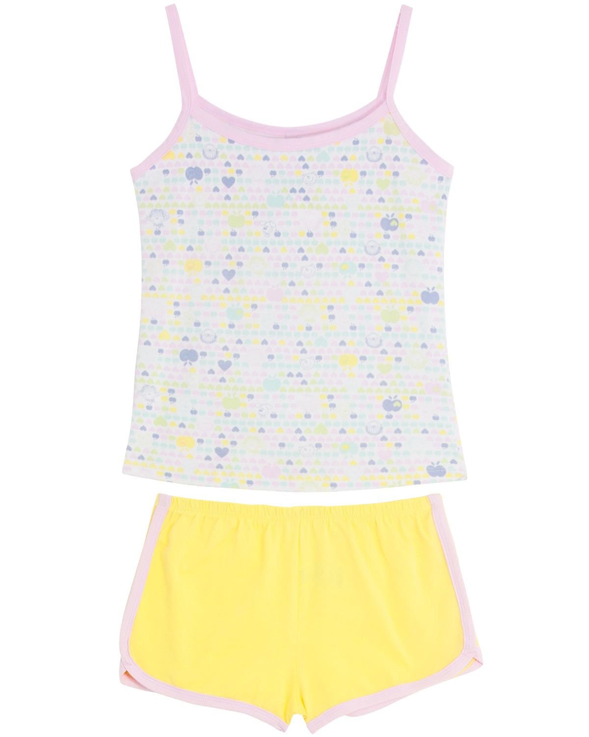 O short doll é feminino e delicado desde a composição de cores. Com estampa de frutas por toda a blusinha de alça, essa peça trará a sensação agradável de conforto para suas noites de sono.