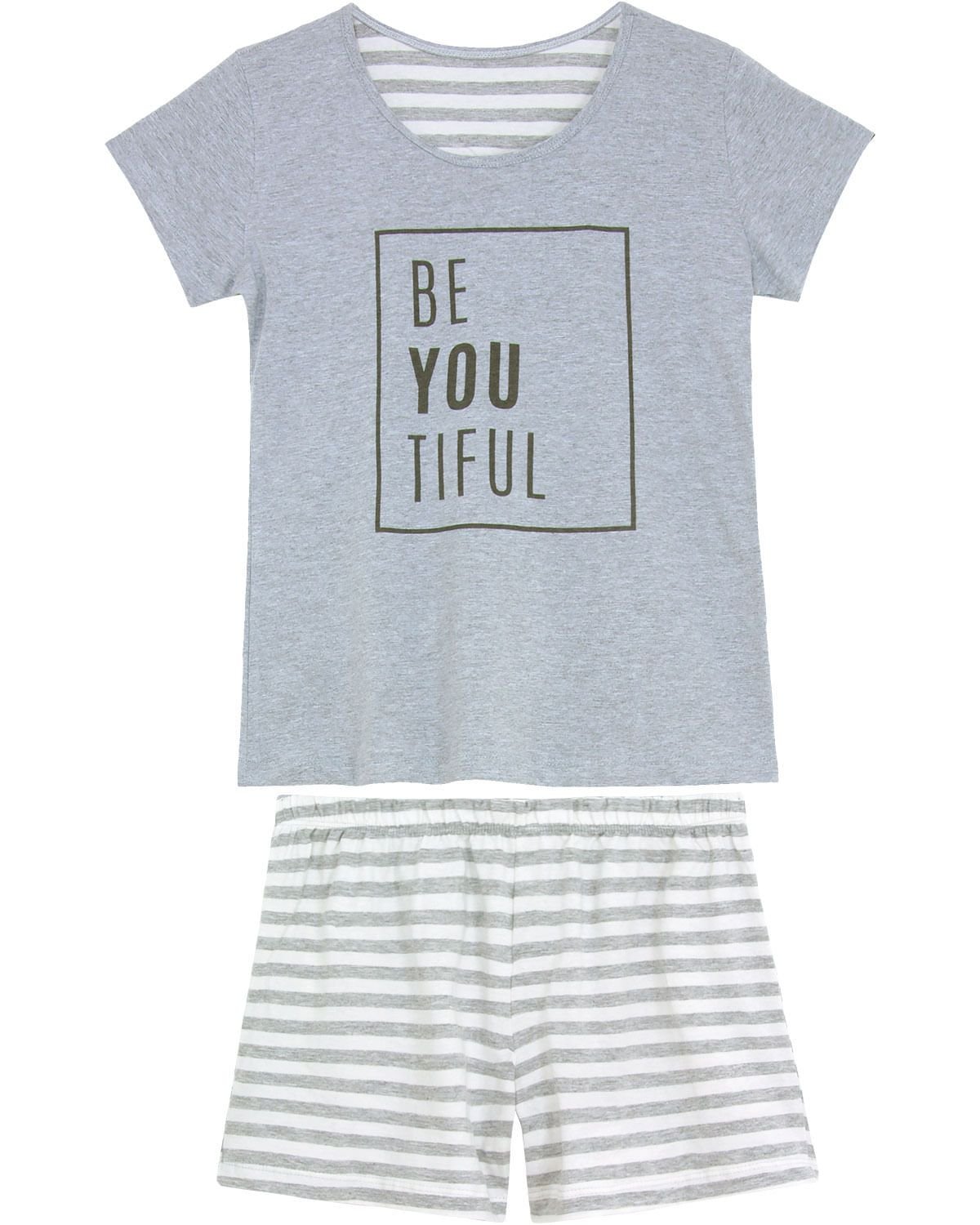 O shortdoll além de muito conforto é aquele item prático que toda mulher precisa ter. Com blusa de manga curta e short listrado, esse modelo é confeccionado em algodão de ótima qualidade, leve e macio, proporcionando agradáveis noites de sono e sensação de bem-estar. A beleza da peça fica por conta da estampa, que faz um troca palavras em inglês, e das listras no short, deixando a peça mais harmônica e jovial.