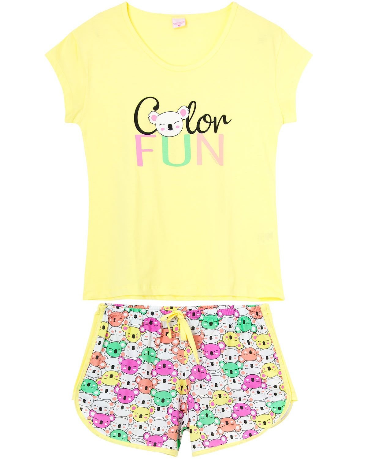 Um pijama descontraído que brinca com as cores e com a delicadeza na estampa de coala. Ele é composto por blusa de manga curta e short com cós de elástico. Todo confeccionado em algodão, um tecido macio com ótima vestibilidade, esse pijama confere um perfeito caimento e liberdade de movimentos.