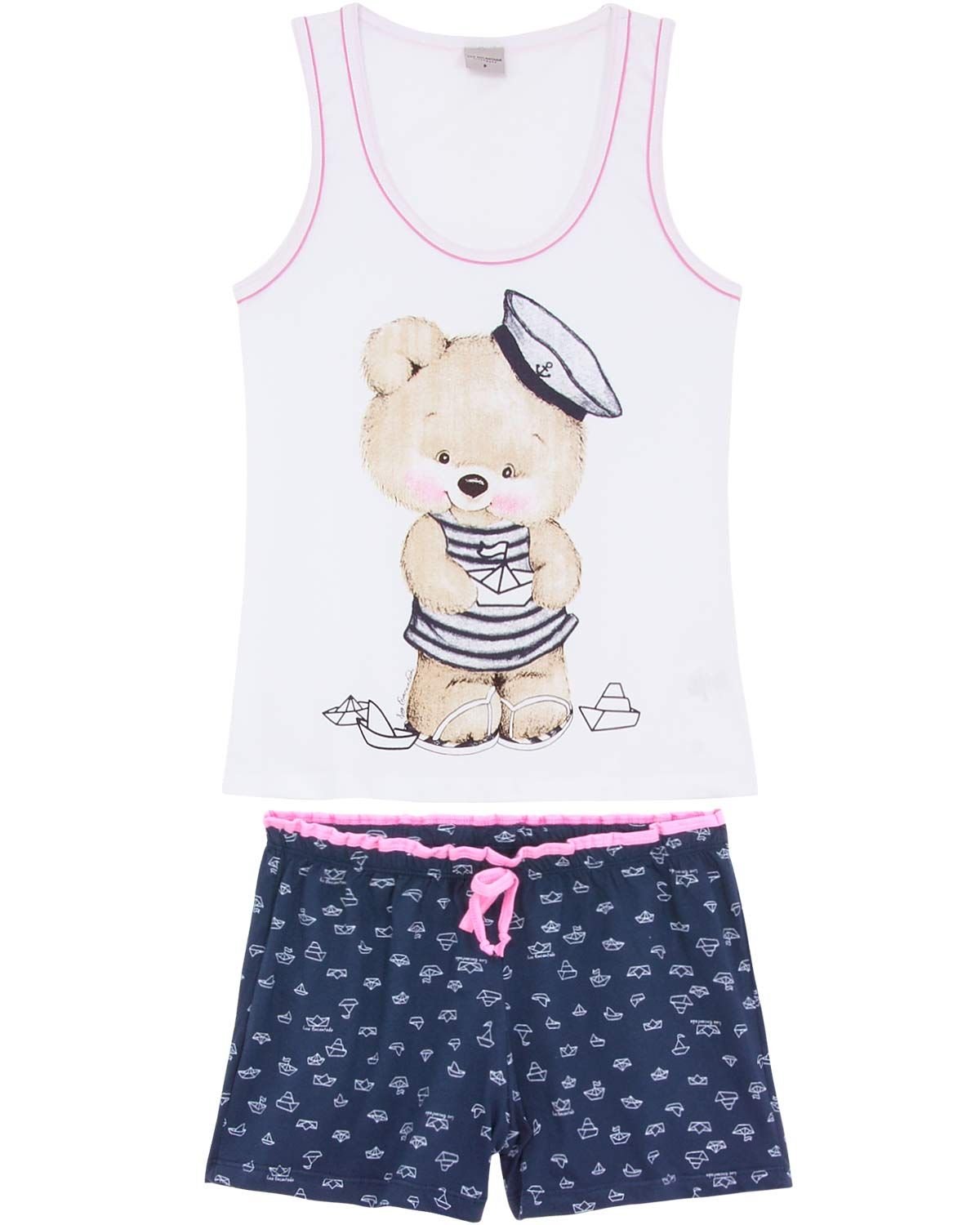 Os pijamas com estampas de bichinhos são ótimos para alegrar e descontrair o ambiente. Esse short doll possui blusa regata com estampa linda e fofa de ursinha e short cheio de barquinhos, compondo um visual meigo e divertido. É confeccioando em malha 100% algodão, que é um tecido leve, confortável e perfeito para os dias de verão, pois não esquenta e não causa alergias. Ideal para mulheres que desejam aproveitar os momentos de descanso da melhor forma possível.