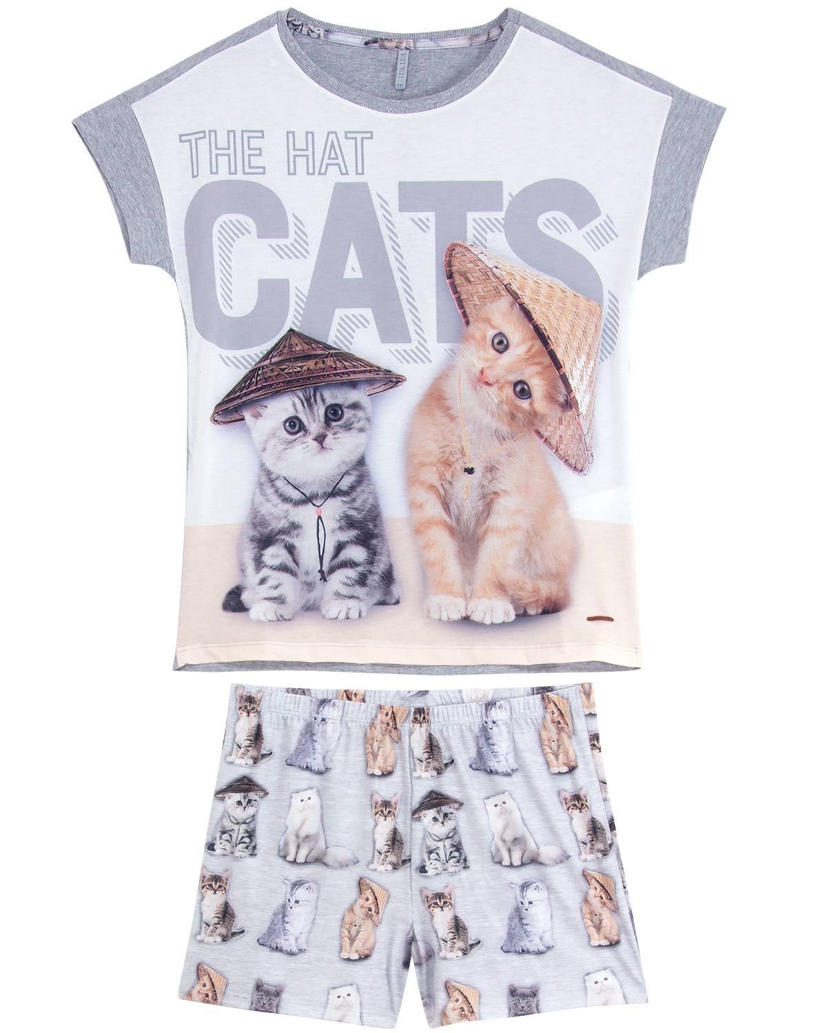 Não existe sensação melhor do que chegar em casa depois de um dia cansativo e colocar um pijama confortável. Esse modelo de blusa de manga curta com decote "U" é confeccionado em malha de algodão de excelente qualidade, que é uma malha leve e macia, garantindo todo conforto necessário que toda mulher procura. A blusa e o short possuem uma linda estampa de gatinhos, super fofa e delicada. Ideal para encantar suas noites.